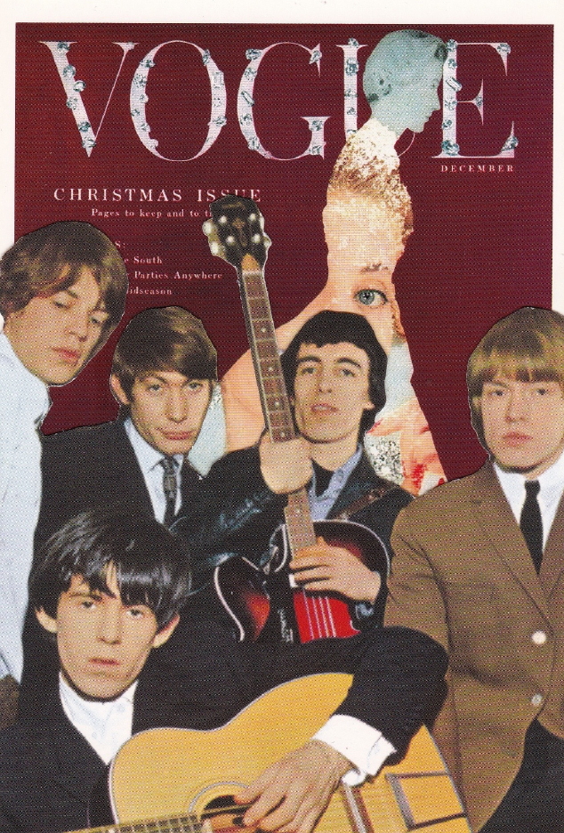 Couldn't resist doing The Rolling Stones on the cover of VOGUE! Hey, somebody had to do it! Again, another of my trusty postcard size VOGUE covers and I happened to have a postcard with the early Stones on it. Voilá!